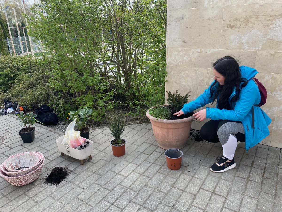 A javaslatok alapján mintegy 90 darab egynyári és évelő, valamint sziklakerti növényt szereztek be, amelyek elültetésében a közösség minden tagja részt vett. A tavaszi munkálatok nemcsak az ültetésről szóltak: az udvar rendbetétele, a lehullott növényi részek összegyűjtése is része volt a közös tevékenységnek. Külön figyelmet kaptak a legfiatalabbak is: a második osztályos tanulók kis kannákkal locsolták az iskola szobanövényeit, így ők is aktívan bekapcsolódhattak a gondozási feladatokba.