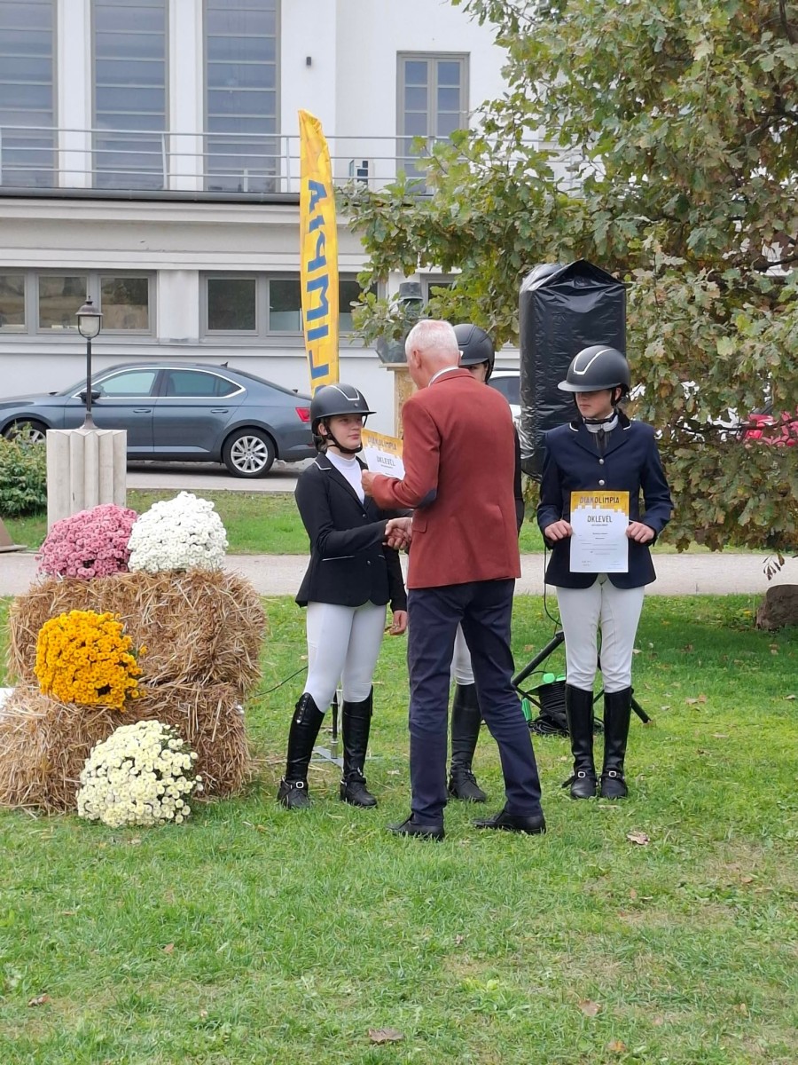 A döntőbe jutáshoz a versenyzőknek előzetesen öt regionális selejtezőn kellett sikeresen szerepelniük. Bőhm Luca a díjugratás 14 éves korig REV kategóriában a 8. helyen zárt az országos döntőben. A Pápai Weöres Sándor Általános Iskolát képviselte, lova Der Stern volt. Kiss Viktória szintén a 8. helyet szerezte meg a díjugratás 15 év felettiek REV kategóriájában. A Türr István Gimnázium és Kollégium tanulójaként indult, lova Sáripuszta Hullám volt.