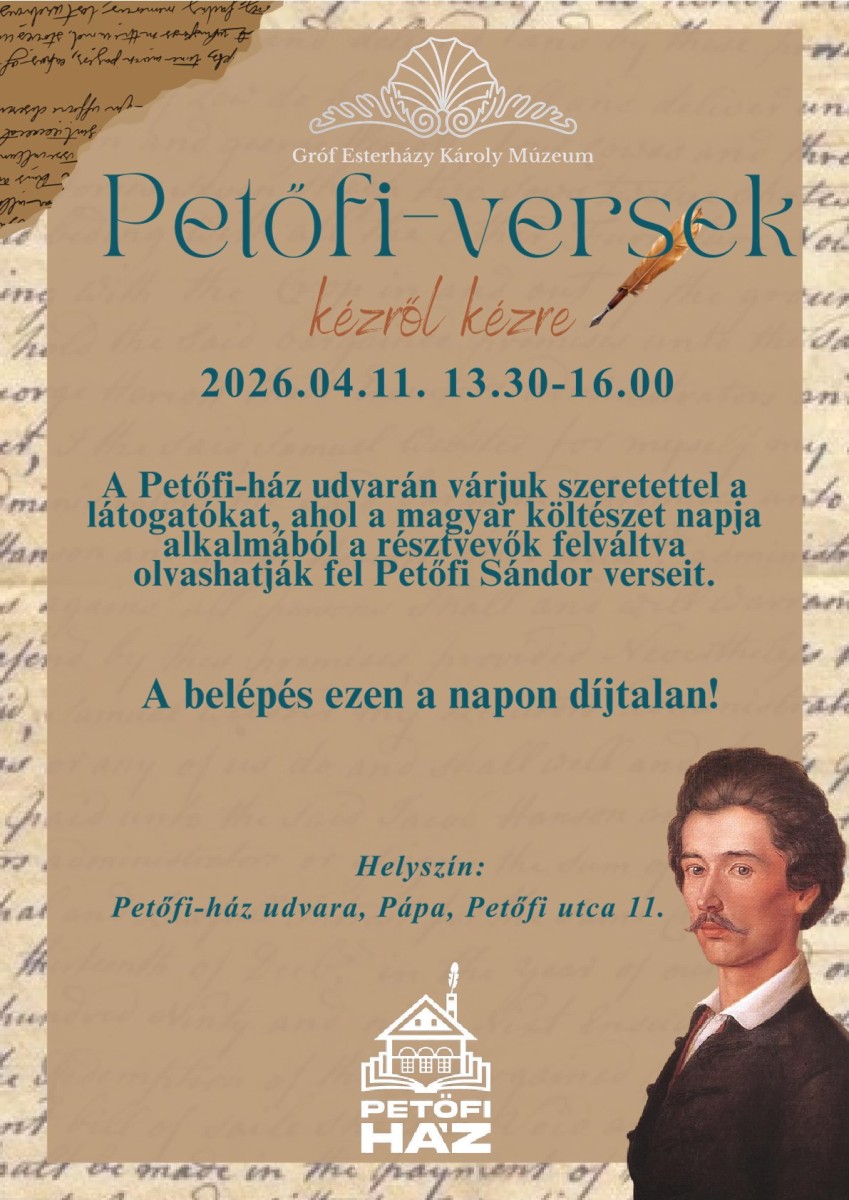 A „Petőfi-versek kézről kézre” című rendezvény 13:30 és 16:00 között várja az érdeklődőket a Petőfi-ház udvarán. Az esemény lényege, hogy a látogatók egymást váltva olvassák fel Petőfi legismertebb és kevésbé ismert verseit, ezzel teremtve közösségi élményt és tisztelegve a magyar irodalom egyik legnagyobb alakja előtt.